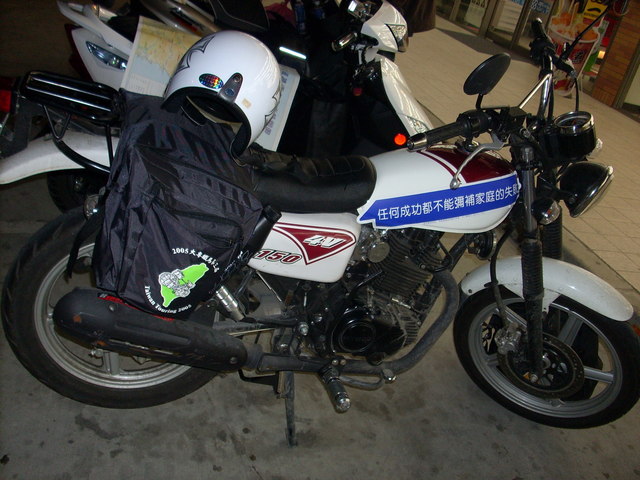 若是把四台車比一比,我的車絕對會是最普通的,其他三個人的車都大改,而我的KTR是原汁原味半個零件都沒動,而其他配備更不用說了,通通是腳踏車用的。馬鞍袋是腳踏車的、手套是腳踏車的、背包也是腳踏車的……