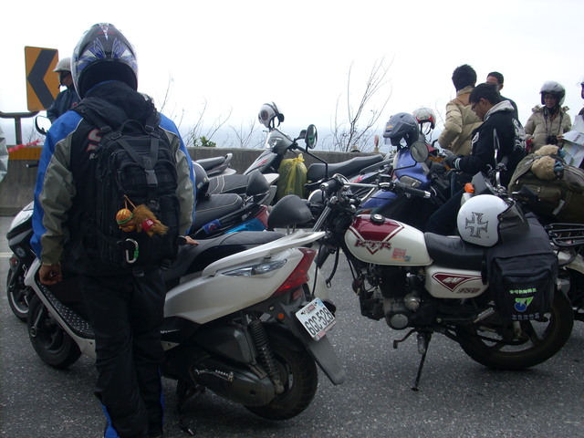 後來又有好幾台摩托車從後面超了上來,一起停在前面儼如一群小車隊。其中還有阿恩工作時的同事,知道都是要去宜蘭後,決定同騎一段,四人小隊暫時變成七個人,我們騎到蘇澳的時候才彼此分開。