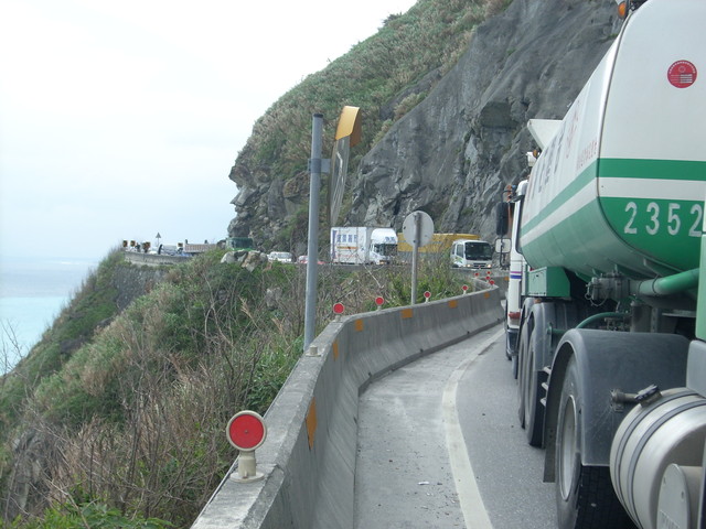 車龍很長,三四百公尺吧,超了那麼多的車,越騎就覺得好爽。騎到最前面時終於發現為什麼會塞住,因為施工而封路,要等一會兒。