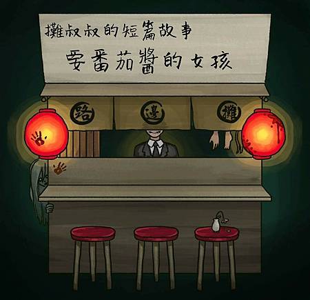 吸口氣冷靜下來後,我認出這張臉孔就是剛才在店裡跟我要番茄醬的女孩,我趕緊下車繞到後面,只見那女孩蹲在後車廂旁邊,她笑瞇瞇地盯著我看,鮮紅的臉孔配上詭異的笑容,讓我全身發毛。